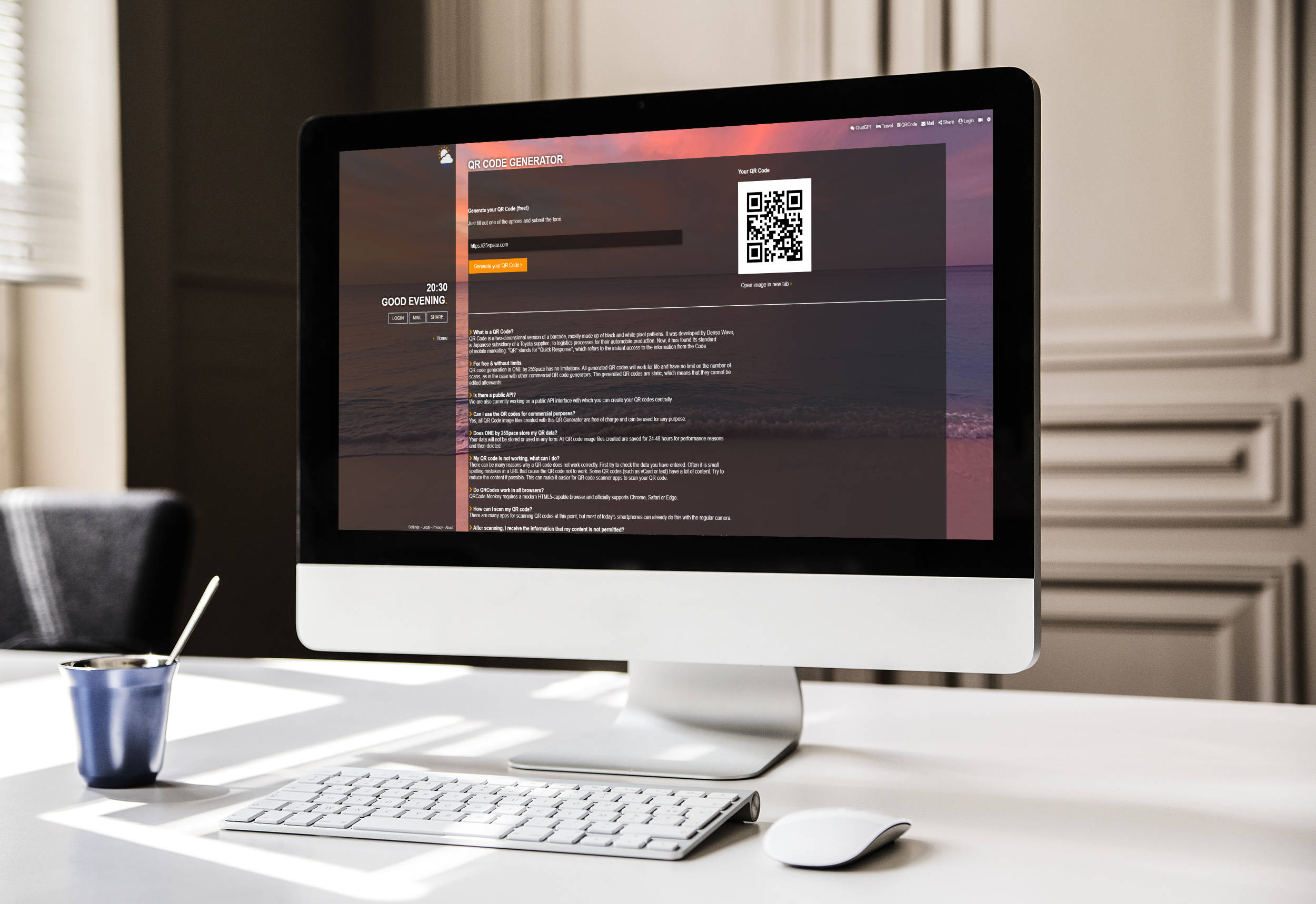 On our recently announced website ONE by 25Space.com we have also launched a new service: free QR Code generator.